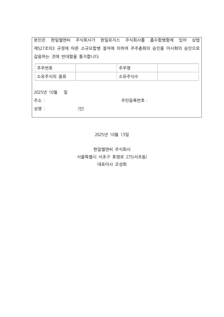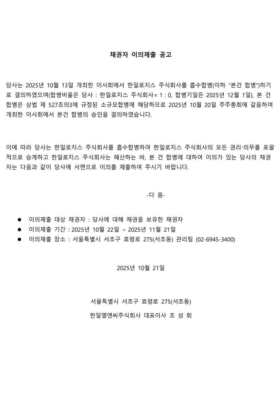 - 합병에 따른 채권자 이의 제출 공고
